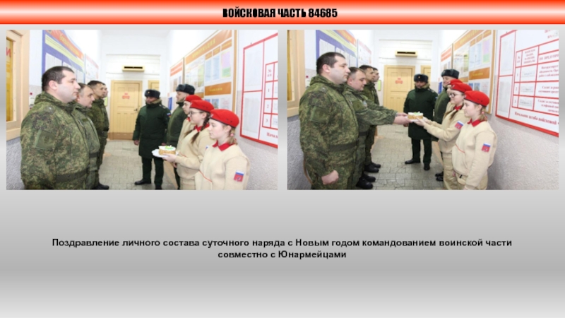 ВОЙСКОВАЯ ЧАСТЬ 84685Поздравление личного состава суточного наряда с Новым годом командованием воинской части  совместно с Юнармейцами