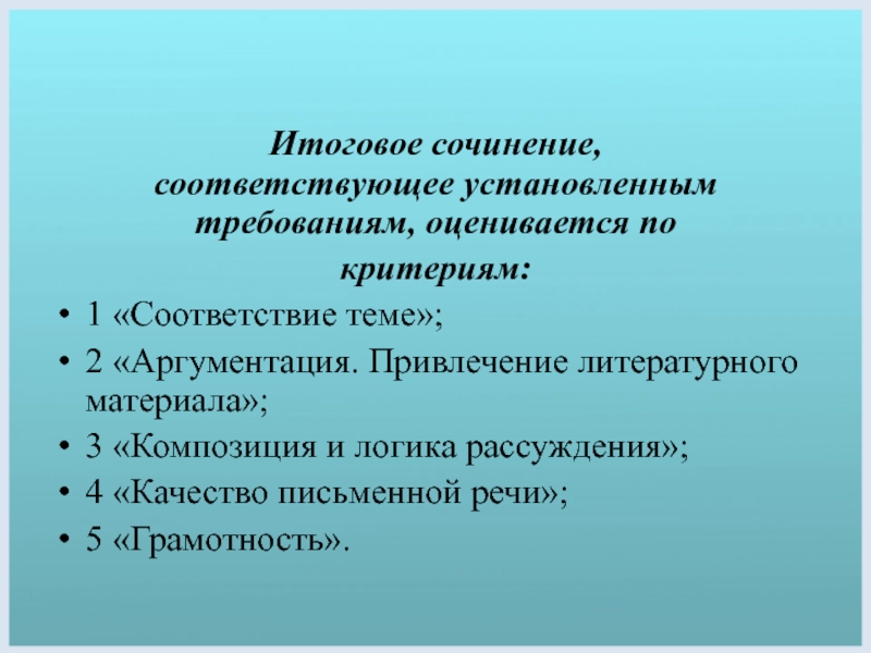 Слайд 15Итоговое сочинение оценивается зачётом, если: