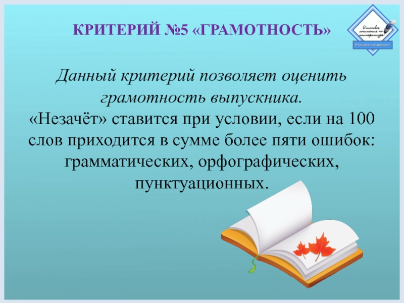 Слайд 14КРИТЕРИЙ №5 «ГРАМОТНОСТЬ»