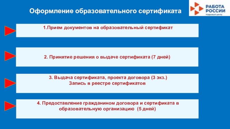 4. Предоставление гражданином договора и сертификата в образовательную организацию (5 дней)