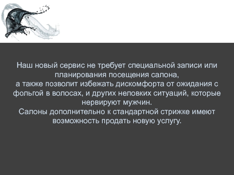 Важно сфокусироваться на деталях чтобы помочь мужчине чувствовать себя комфортно в салоне: встретить у входа, помочь снять верхнюю одежду, проводить до кресла мастера, предложить что-нибудь выпить.