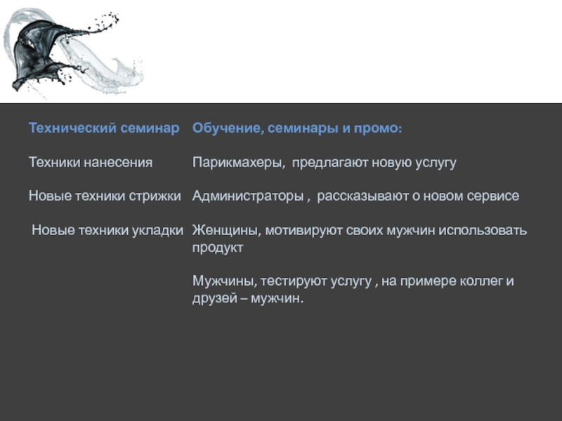 Поддерживать беседу с клиентом, рассказывая про используемый продукт и почему был выбран именно он. Также важно предложить новую стрижку и цвет.
