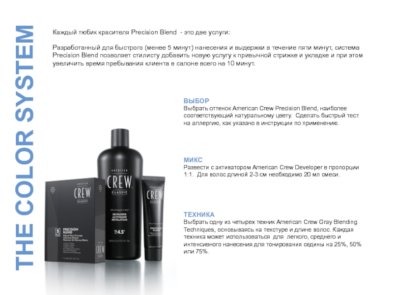 Начать с использования шампуня American Crew Daily Shampoo. Краска American Crew работает лучше на чистых волосах.