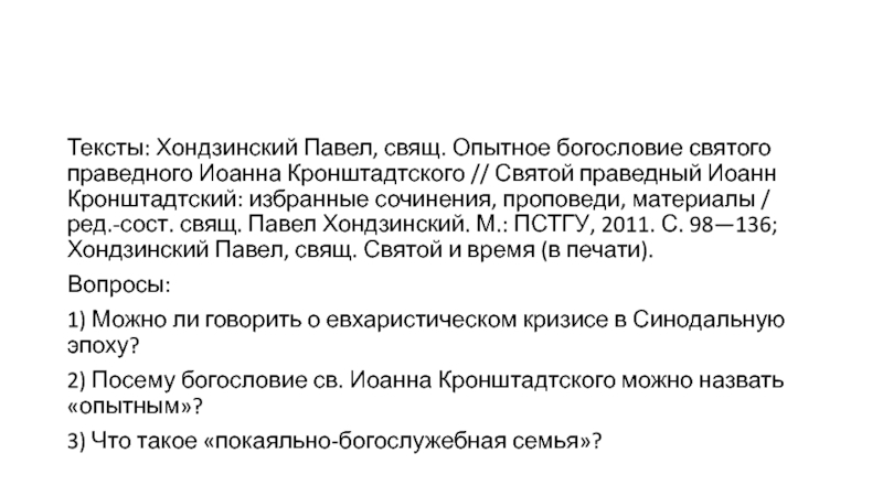 Слайд 16Тексты: Хондзинский Павел, свящ. Опытное богословие святого праведного Иоанна Кронштадтского