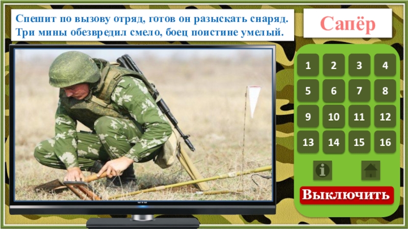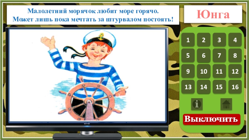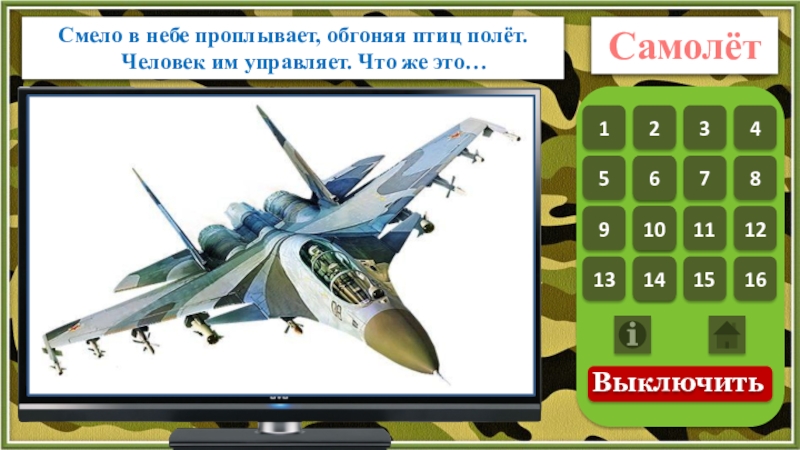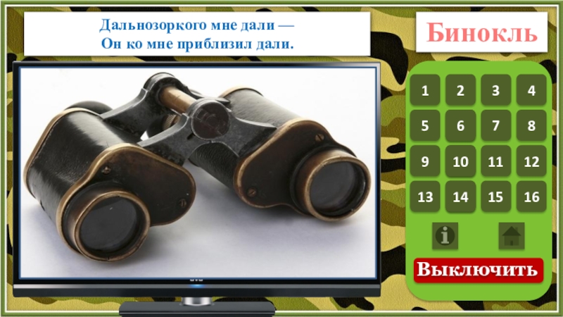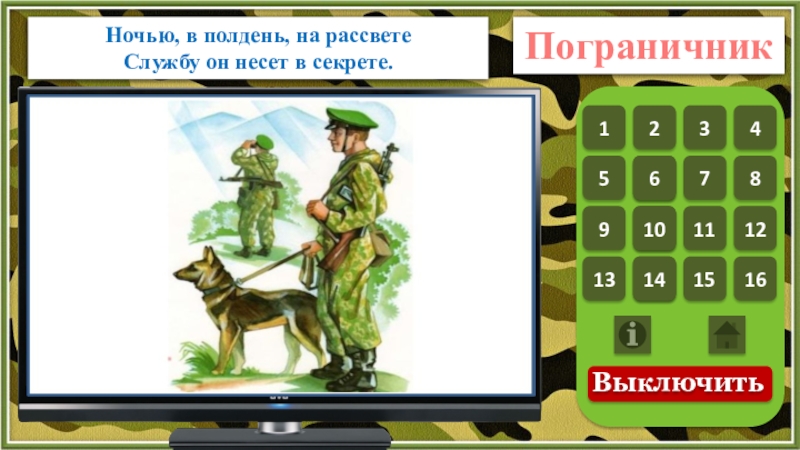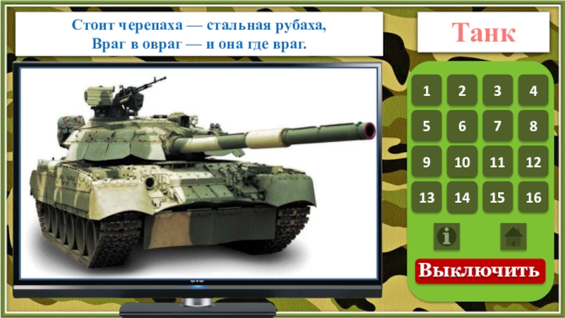 и щёлкните по ней. Если ответ правильный, появится картинка с отгадкой.Для перехода к любой загадке используйте клавиши с числами на пульте.