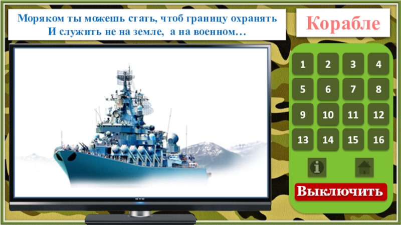 вопрос или загадку, найдите на экране телевизора картинку - ответ