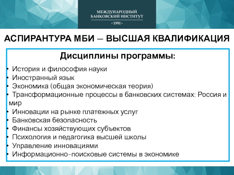 АСПИРАНТУРА МБИ — ВЫСШАЯ КВАЛИФИКАЦИЯ