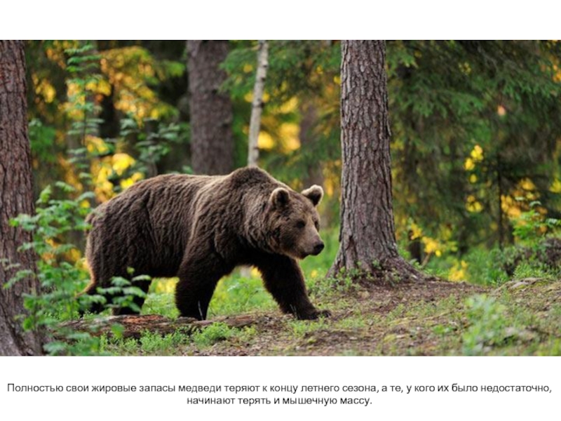 Слайд 16Полностью свои жировые запасы медведи теряют к концу летнего сезона,