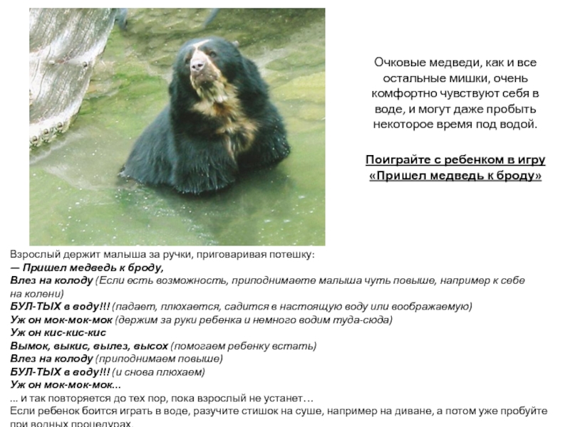 Поиграйте с ребенком в игру «Пришел медведь к броду»