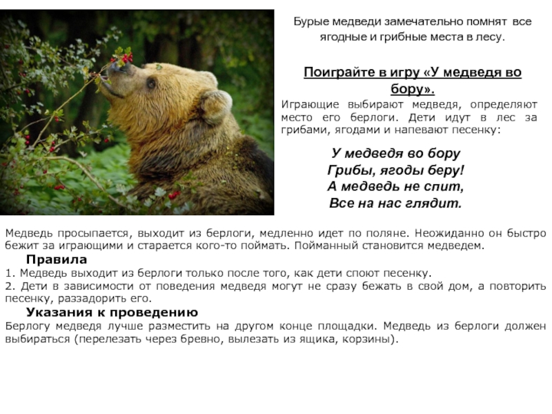 Поиграйте в игру «У медведя во бору».