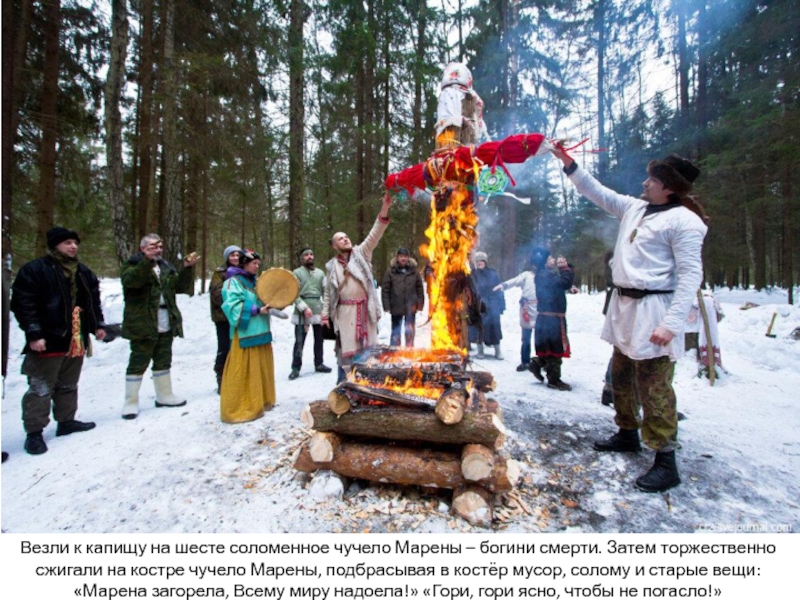 смерти. Затем торжественно сжигали на костре чучело Марены, подбрасывая в
