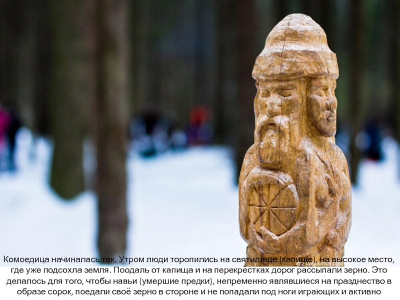Слайд 5Комоедица начиналась так. Утром люди торопились на святилище (капище), на
