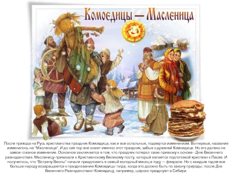 Слайд 12После прихода на Русь христианства праздник Комоедица, как и все