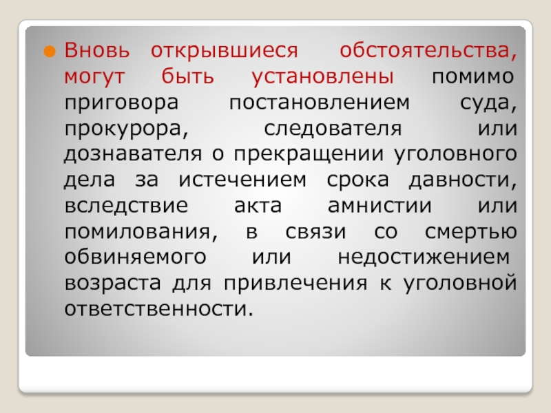 Слайд 10Вновь открывшиеся обстоятельства, могут быть установлены помимо приговора постановлением суда,