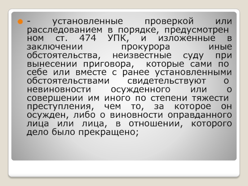 Слайд 8- установленные проверкой или расследованием в порядке, предусмотренном ст. 474