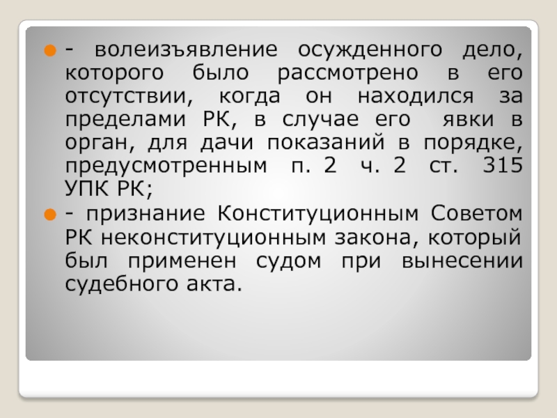 Слайд 9- волеизъявление осужденного дело, которого было рассмотрено в его отсутствии,