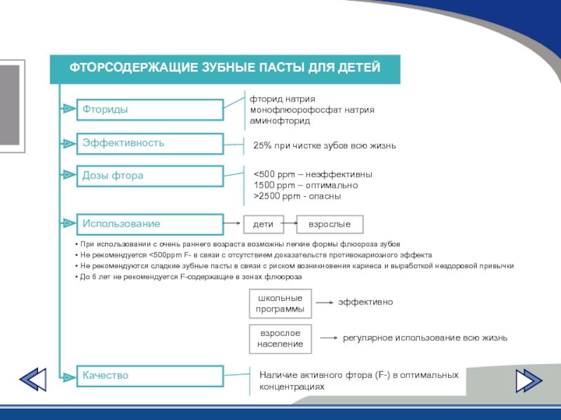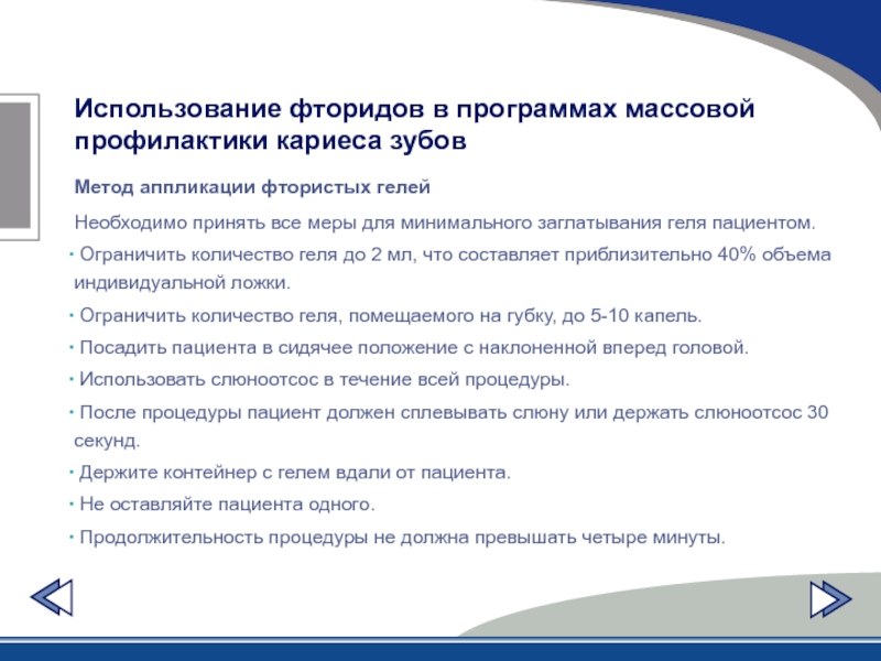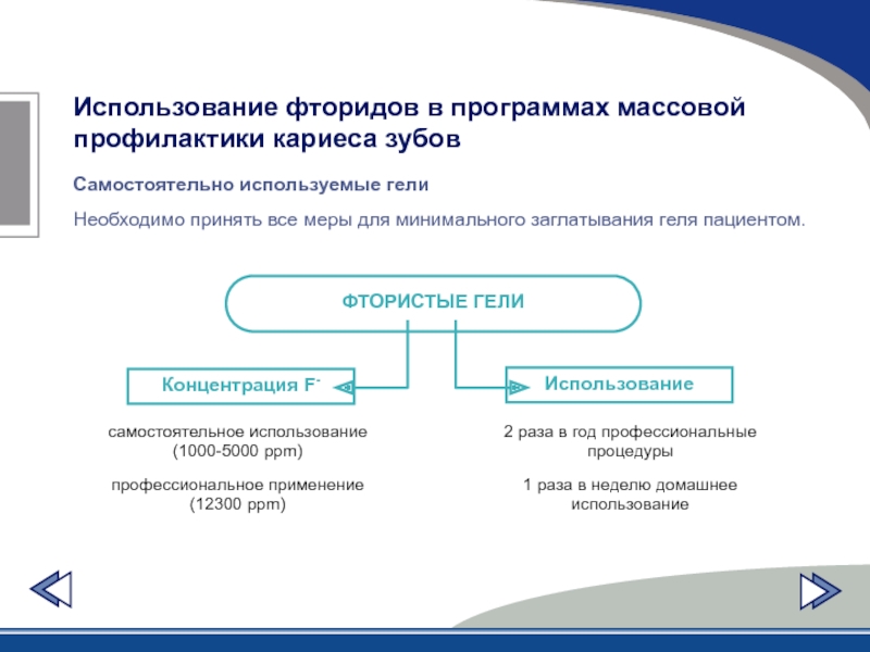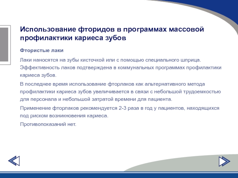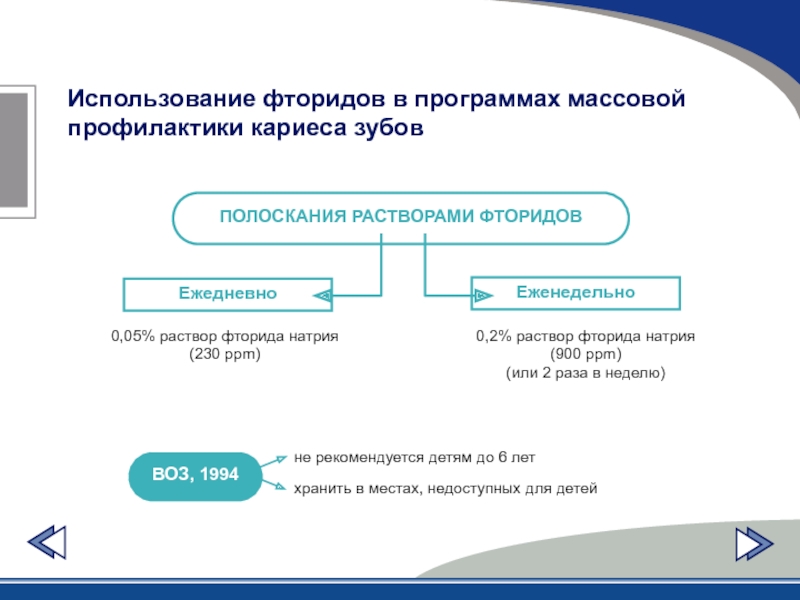 Слайд 40Использование фторидов в программах массовой профилактики кариеса зубов