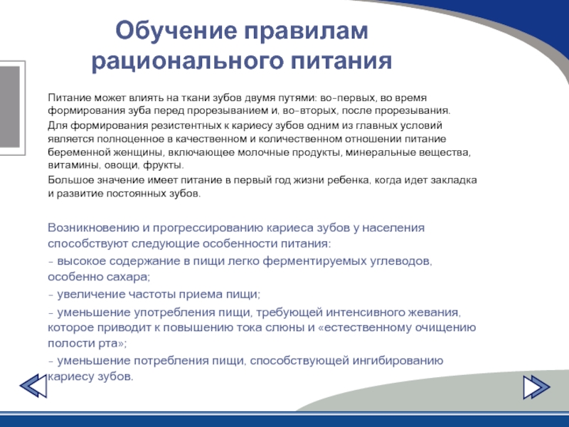 Возникновению и прогрессированию кариеса зубов у населения способствуют следующие особенности питания: