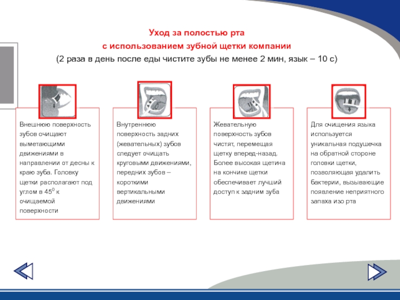 Обучение правилам гигиенического ухода за полостью рта;
