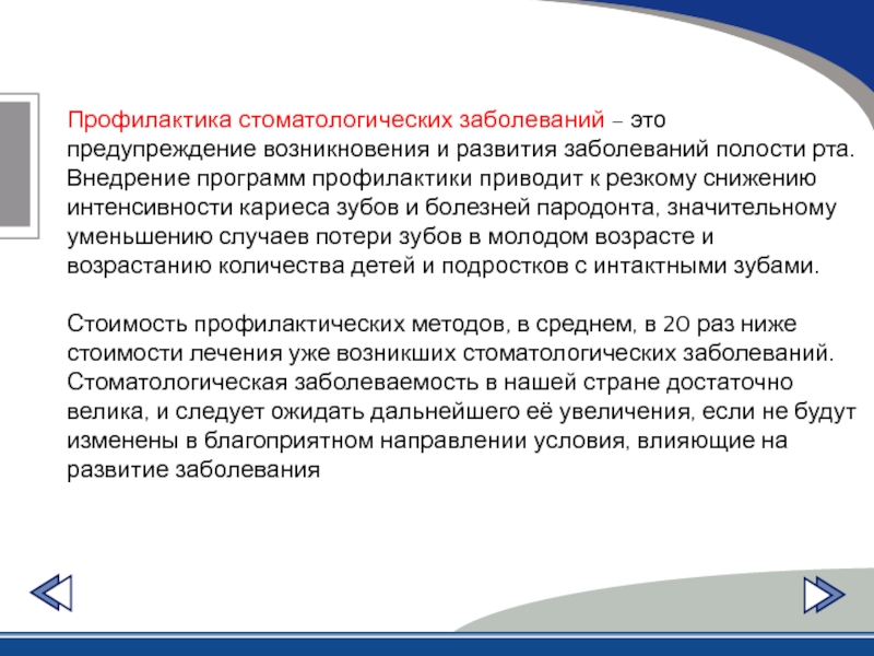 Профилактика стоматологических заболеваний – это предупреждение возникновения и развития заболеваний