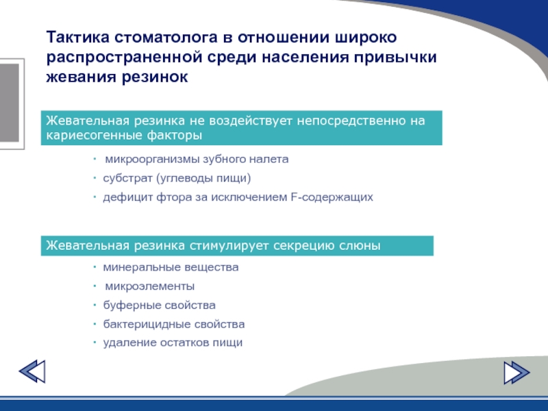 Слайд 46Жевательная резинка не воздействует непосредственно на кариесогенные факторы