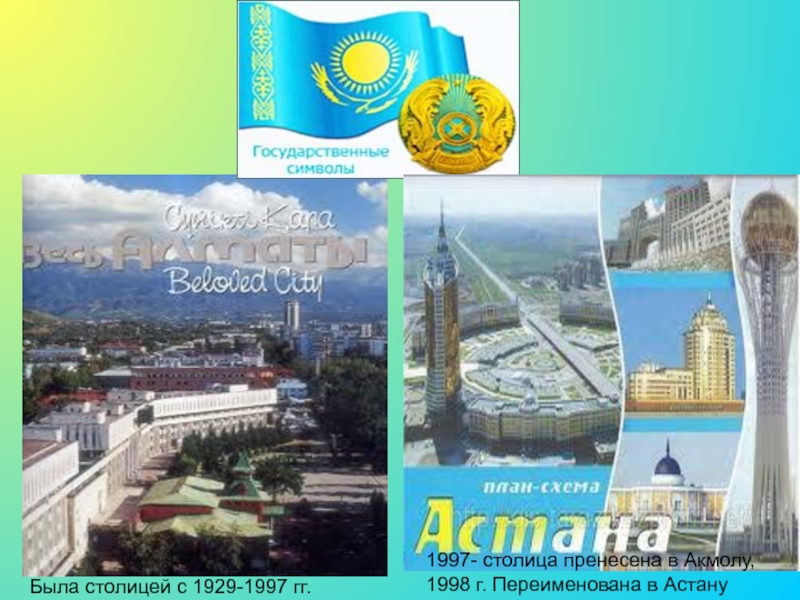 1997- столица пренесена в Акмолу,