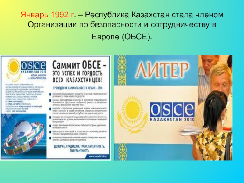 Январь 1992 г. – Республика Казахстан стала членом Организации по