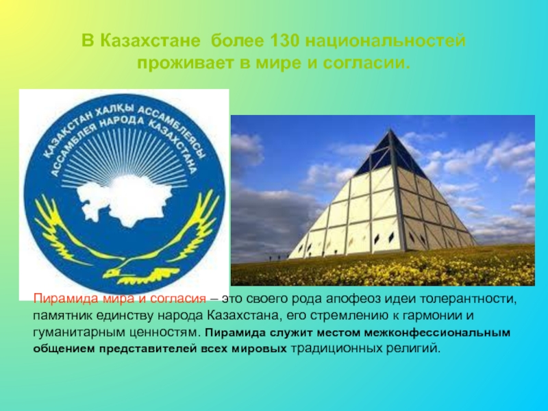 Слайд 9В Казахстане более 130 национальностей проживает в мире и согласии.