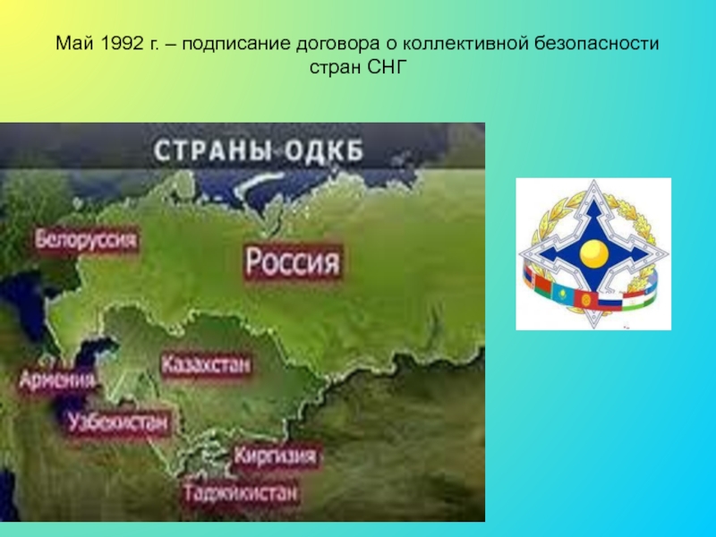 Слайд 22Май 1992 г. – подписание договора о коллективной безопасности стран