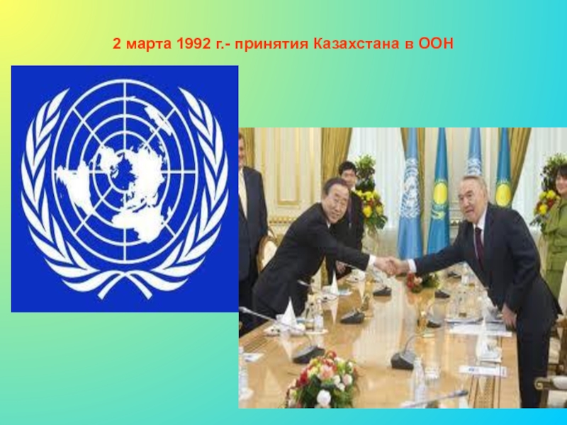 Слайд 202 марта 1992 г.- принятия Казахстана в ООН