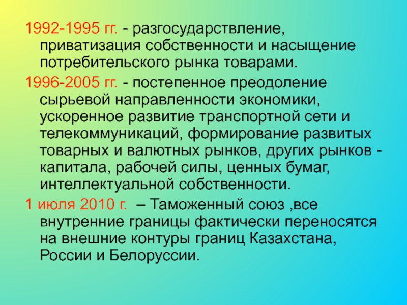 Слайд 151992-1995 гг. - разгосударствление, приватизация собственности и насыщение потребительского рынка