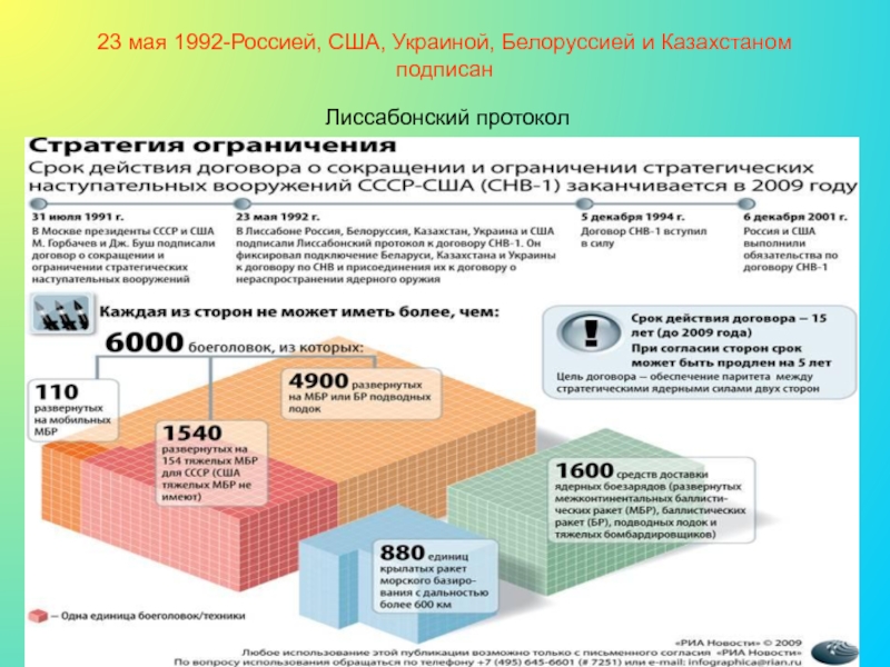 Слайд 2323 мая 1992-Россией, США, Украиной, Белоруссией и Казахстаном подписан