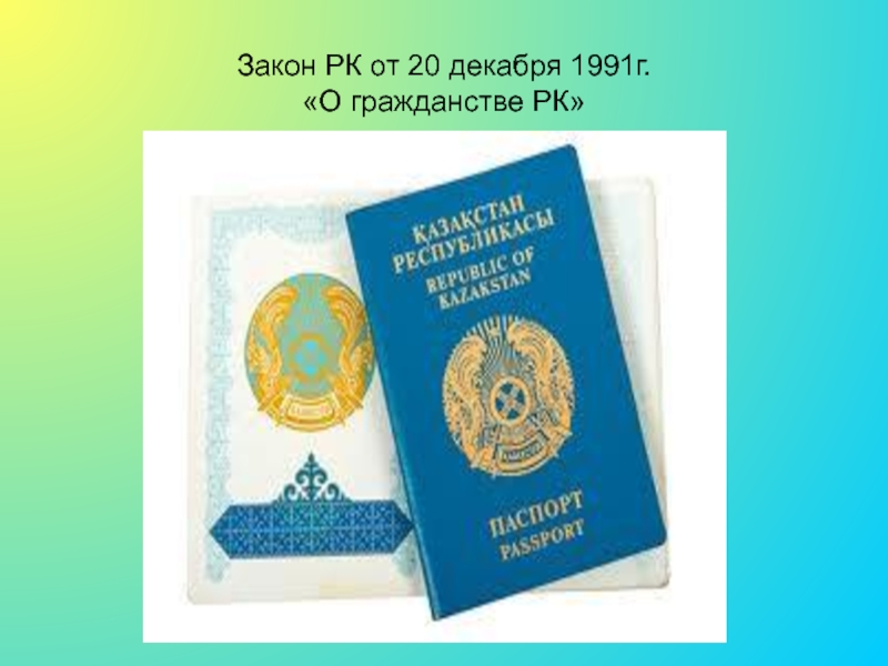 Слайд 10Закон РК от 20 декабря 1991г.
