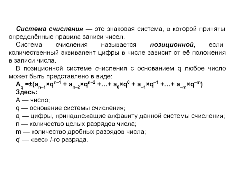 системы счисления с основаниями 5, 10, 12 и 20 называют системами счисления анатомического происхождения.