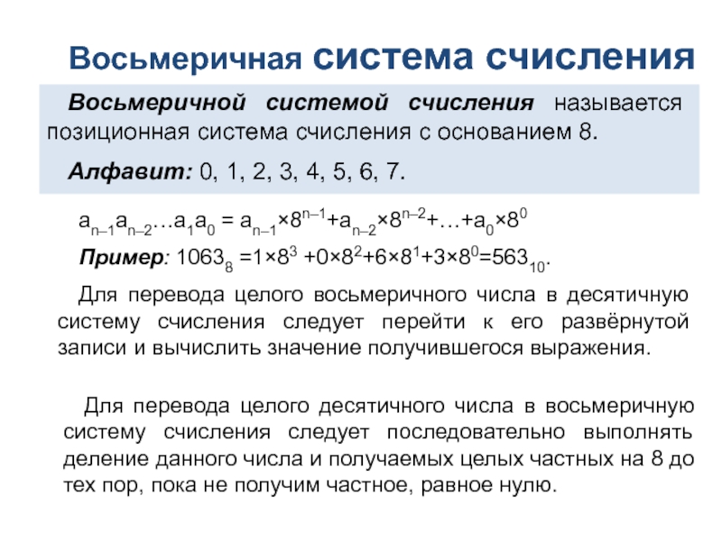 Переведите целые числа из десятичной системы счисления в восьмеричную: