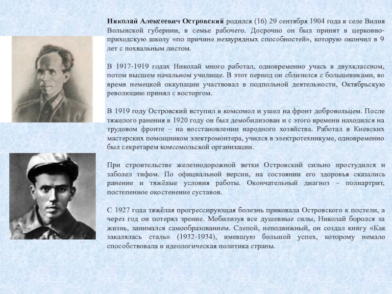 Незаконченный роман Н.Островского "Рожденные бурей" повествует о борьбе красных партизан с немецкими оккупантами. Время действия - 1918 г. Место действия - Западная Украина.