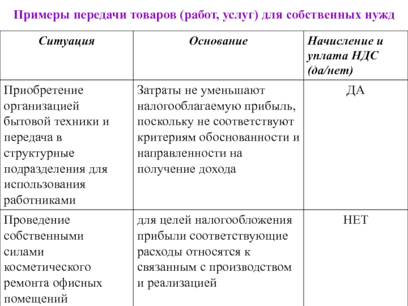 2. Передача на территории РФ товаров (выполнение работ, оказание услуг) для собственных нужд