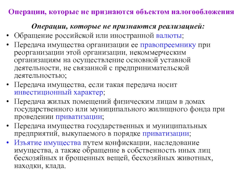 Слайд 13Операции, которые не признаются объектом налогообложения