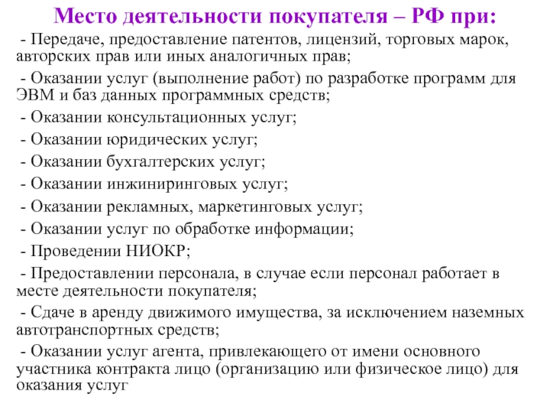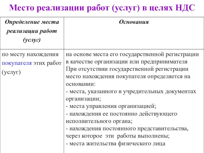 Слайд 8Место реализации работ (услуг) в целях НДС