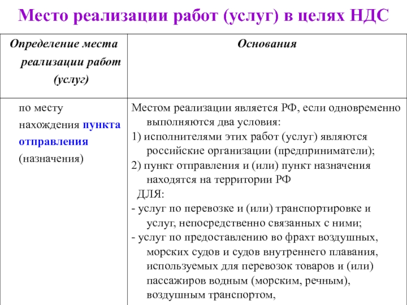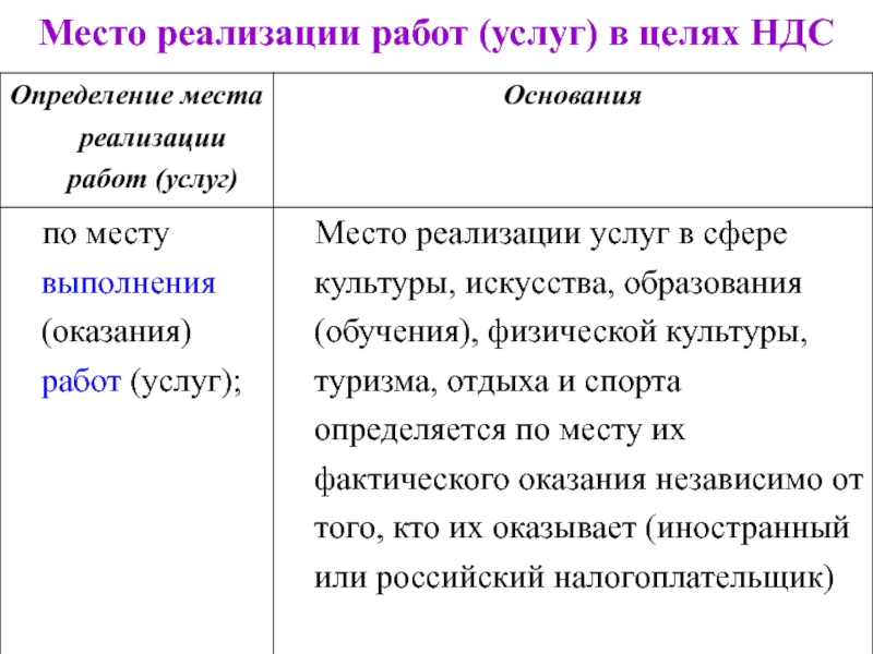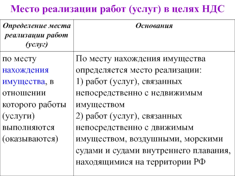 Слайд 7Место реализации работ (услуг) в целях НДС