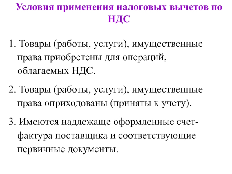 3. Имеются надлежаще оформленные счет-фактура поставщика и соответствующие первичные документы.