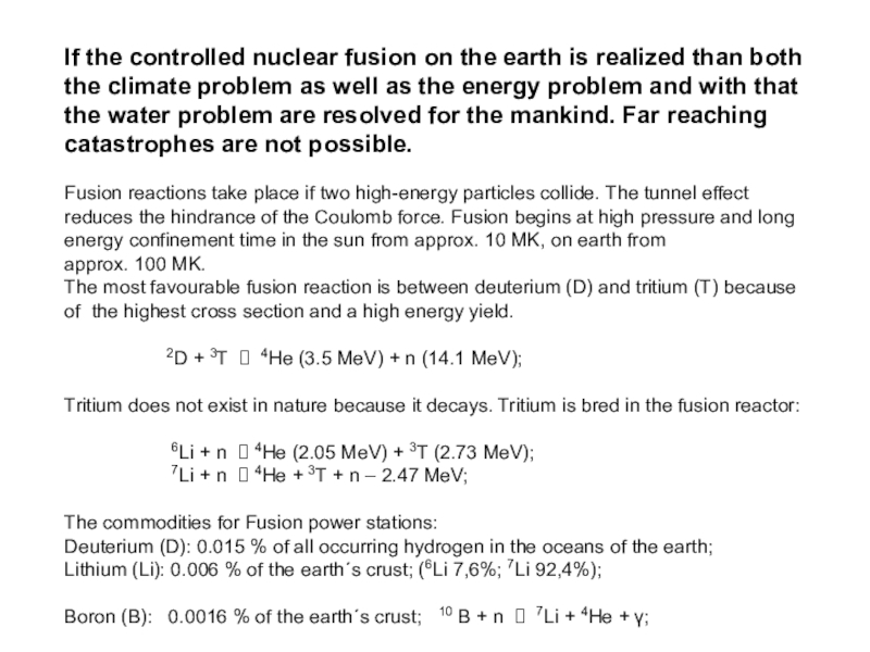 The uranium deposits are not endless. Uranium : 0,0003 % of the earth´s crust; estimated range of availability: 20 to 200 years;