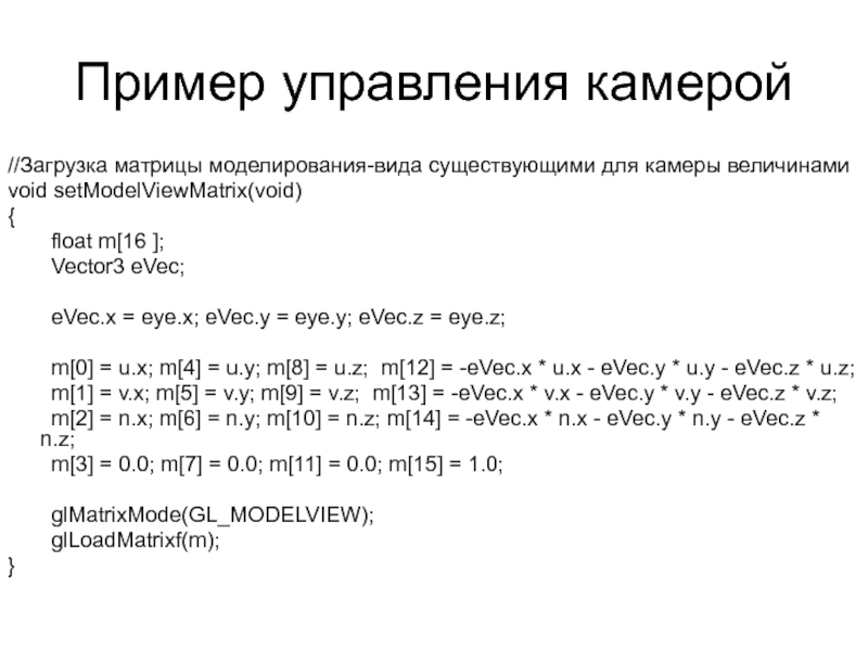 //Загрузка матрицы моделирования-вида существующими для камеры величинами