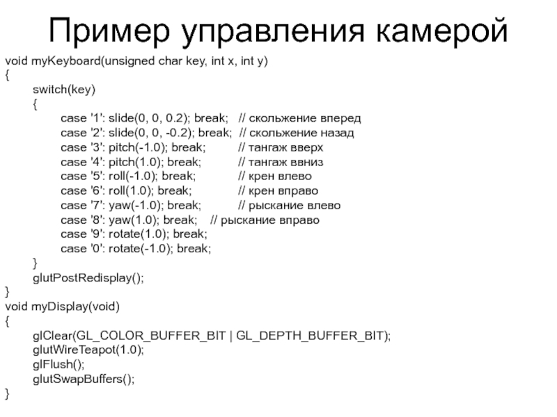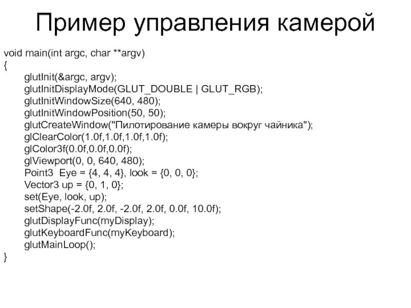 glutCreateWindow("Пилотирование камеры вокруг чайника");