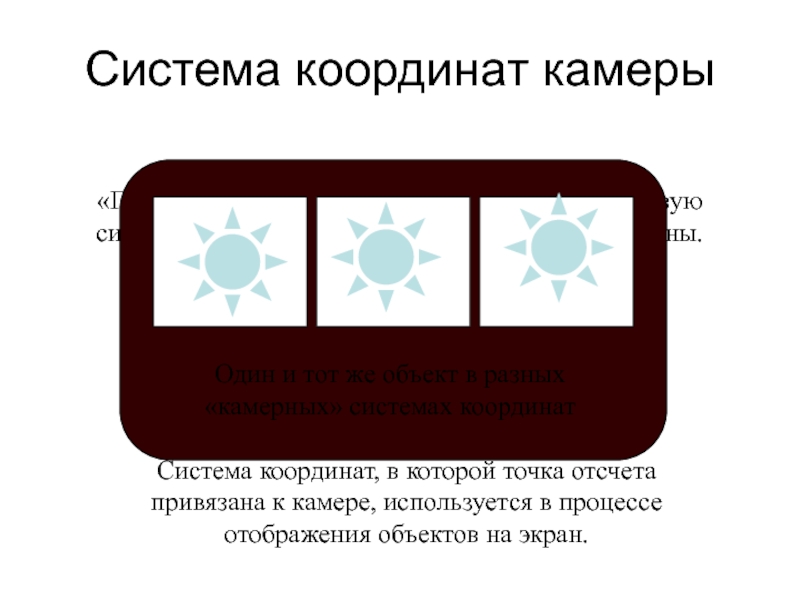 сцену» означает ввести новую систему координат и поместить в нее объекты сцены.