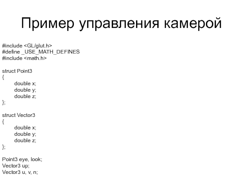 = eye.x - look.x; n.y = eye.y - look.y; n.z = eye.z - look.z;