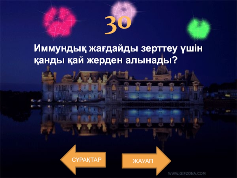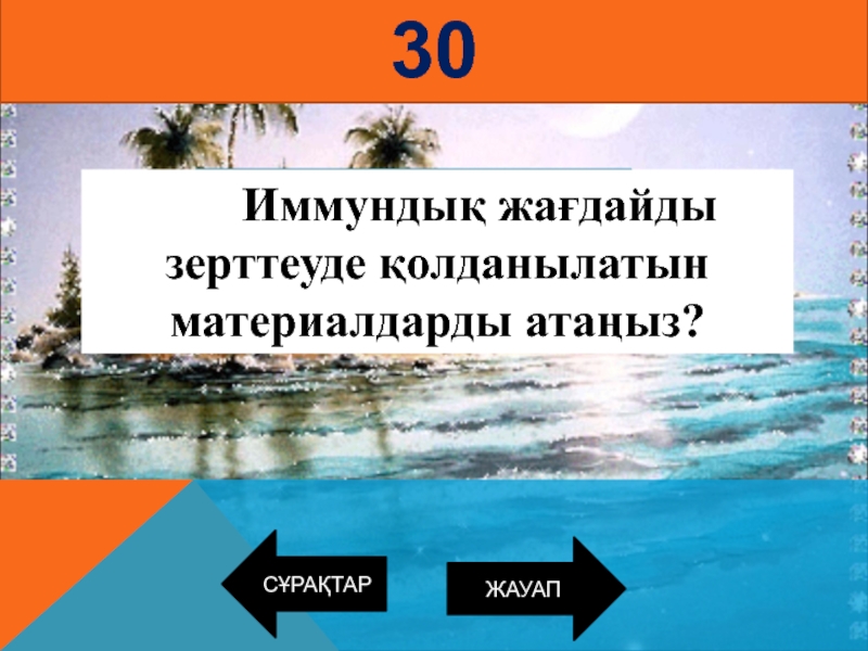 СҰРАҚТАР30ЖАУАП    Иммундық жағдайды зерттеуде қолданылатын материалдарды атаңыз?