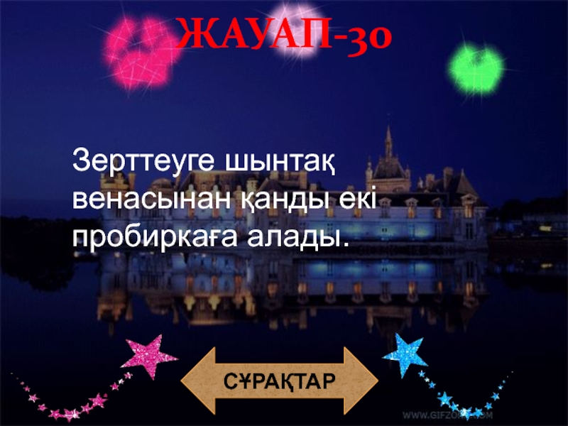 ЖАУАП-30СҰРАҚТАРЗерттеуге шынтақ венасынан қанды екі пробиркаға алады.