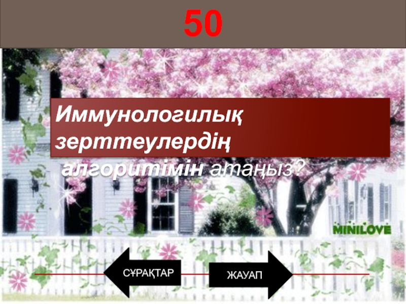 СҰРАҚТАР50ЖАУАПИммунологилық зерттеулердің алгоритімін атаңыз?