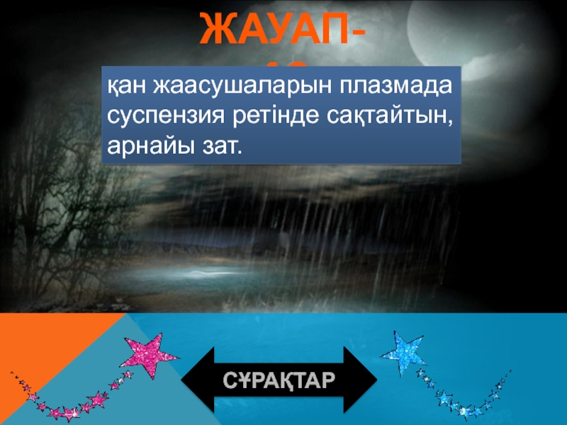 ЖАУАП-40СҰРАҚТАРқан жаасушаларын плазмада суспензия ретінде сақтайтын, арнайы зат.